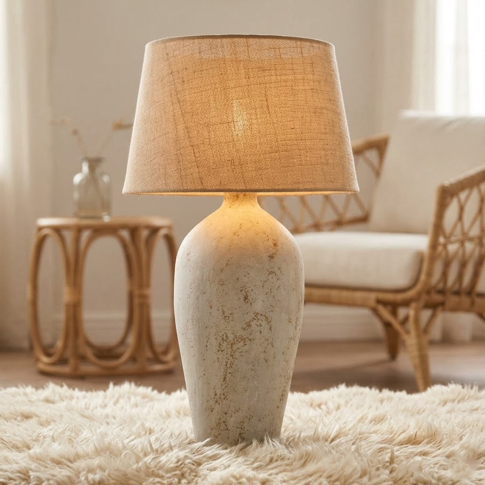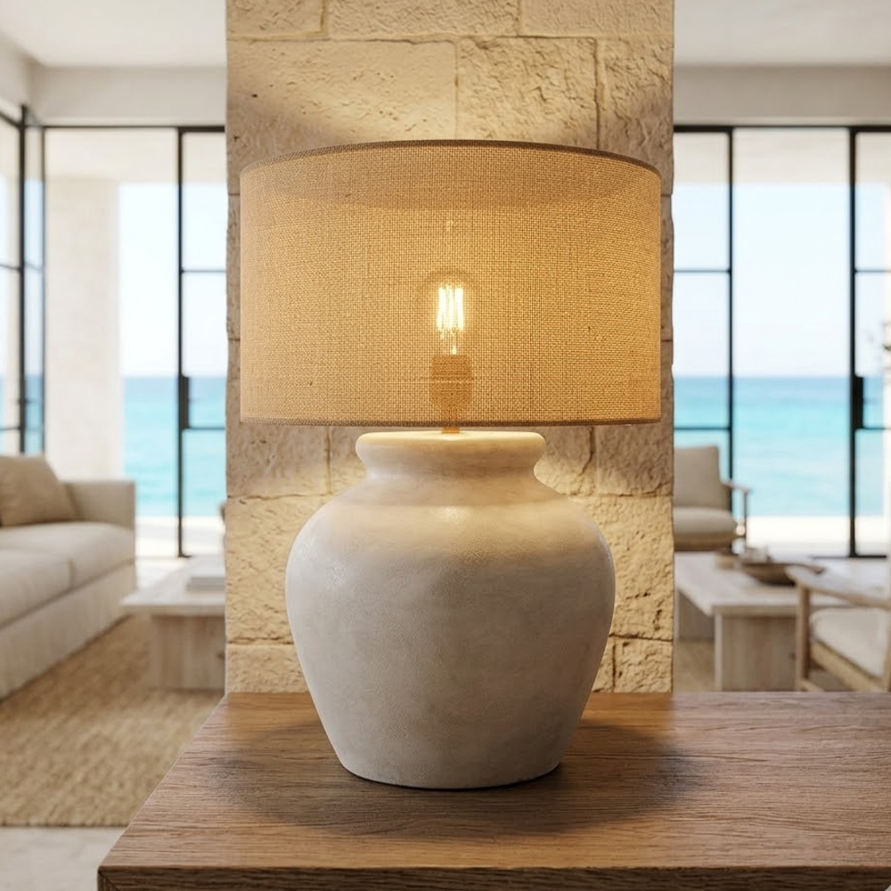 Abajur Arredondado em Cerâmica e Cúpula de Linho...