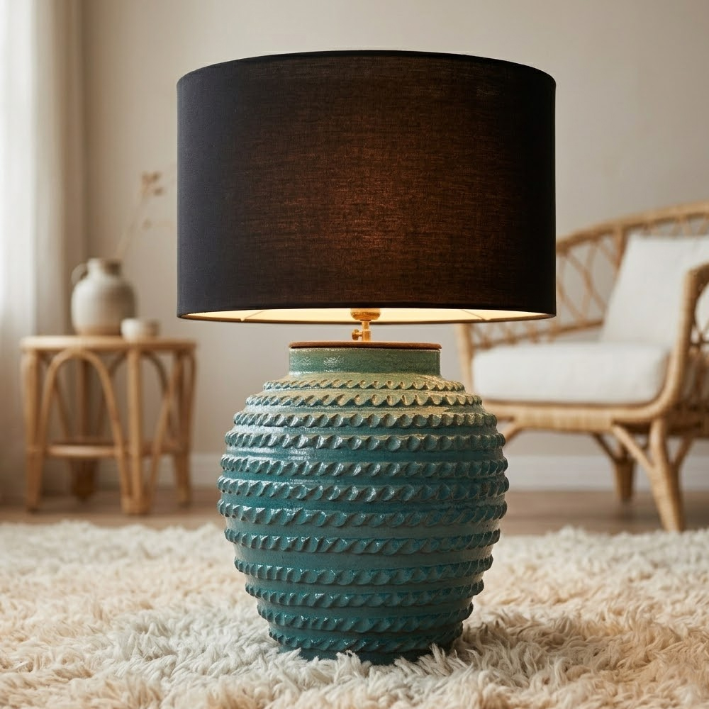 Abajur em Cerâmica Azul com Textura em Relevo A50...