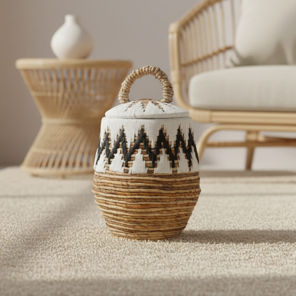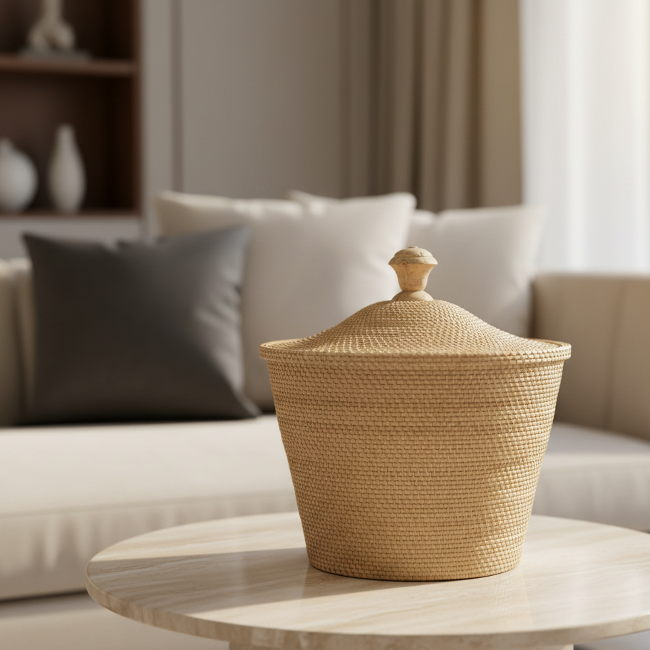 Cesto Organizador com Tampa em Fibra Natural