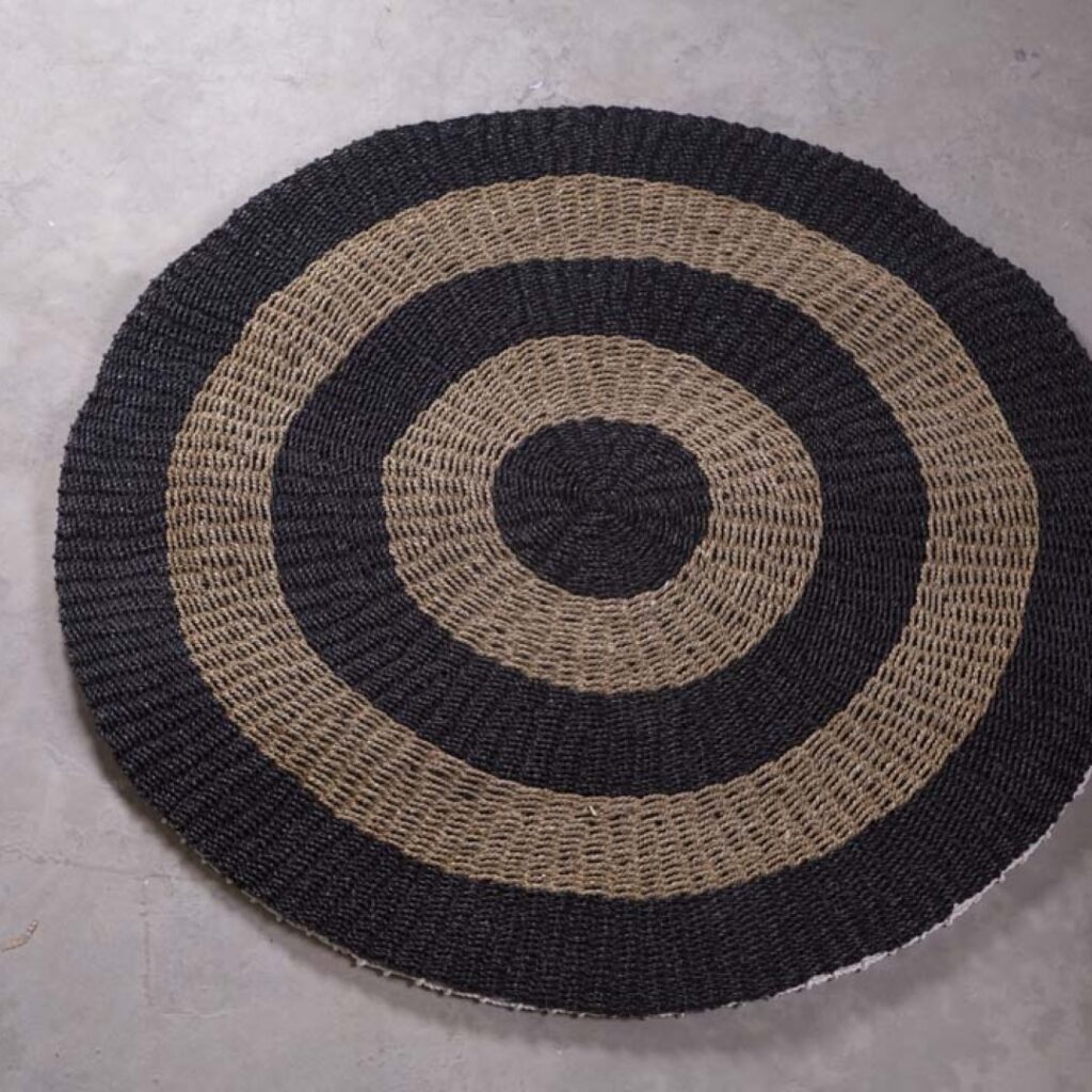 Tapete Redondo em Fibra Natural Bege com Preto