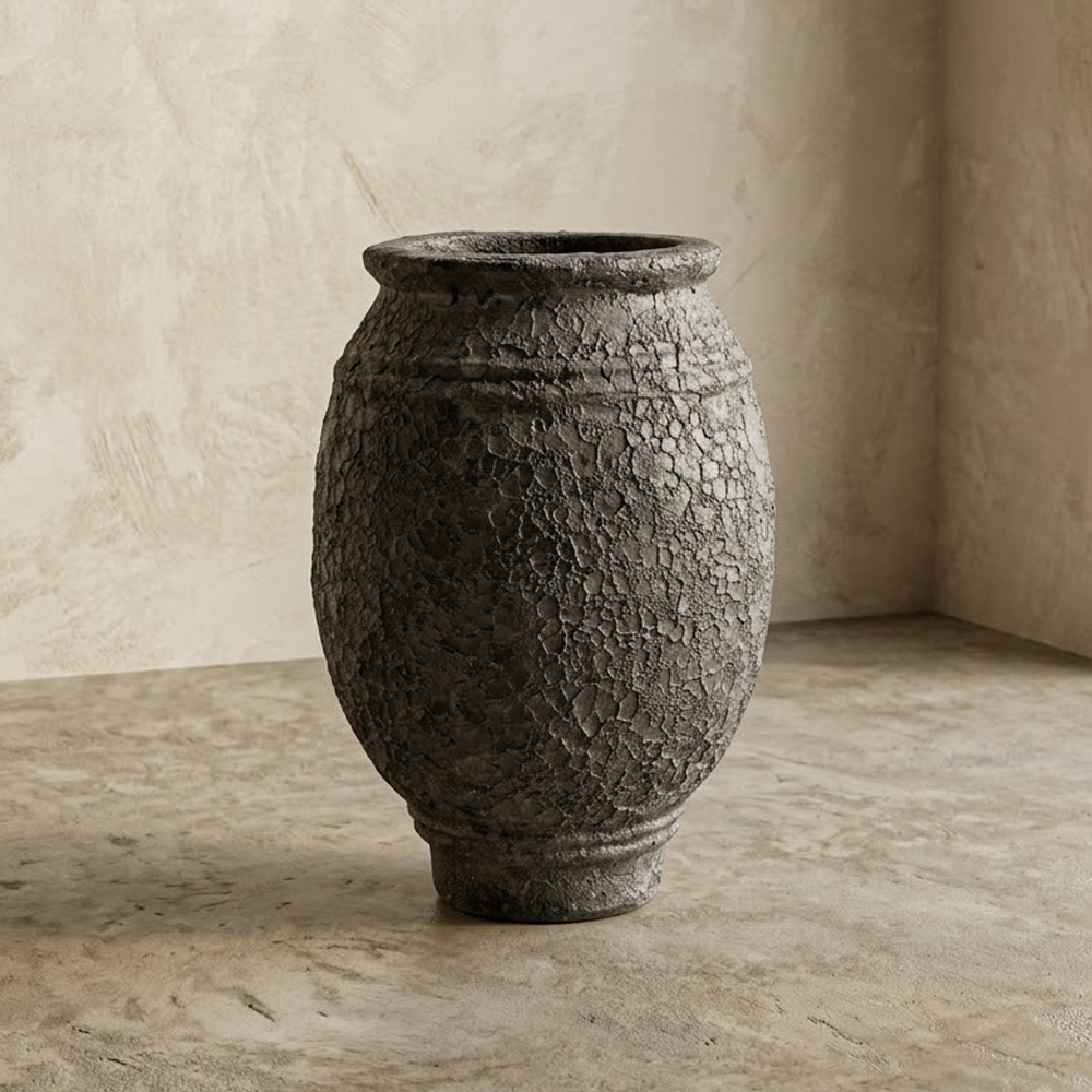 Vaso Vietnamita Atlantis Black em Cerâmica D80 X A86Cm