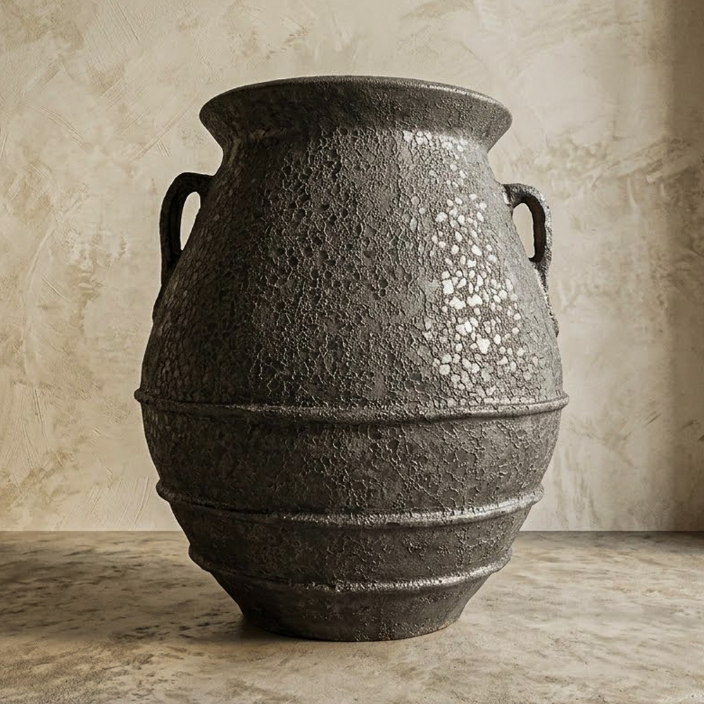 Vaso Vietnamita Atlantis Black em Cerâmica D36 X A53cm