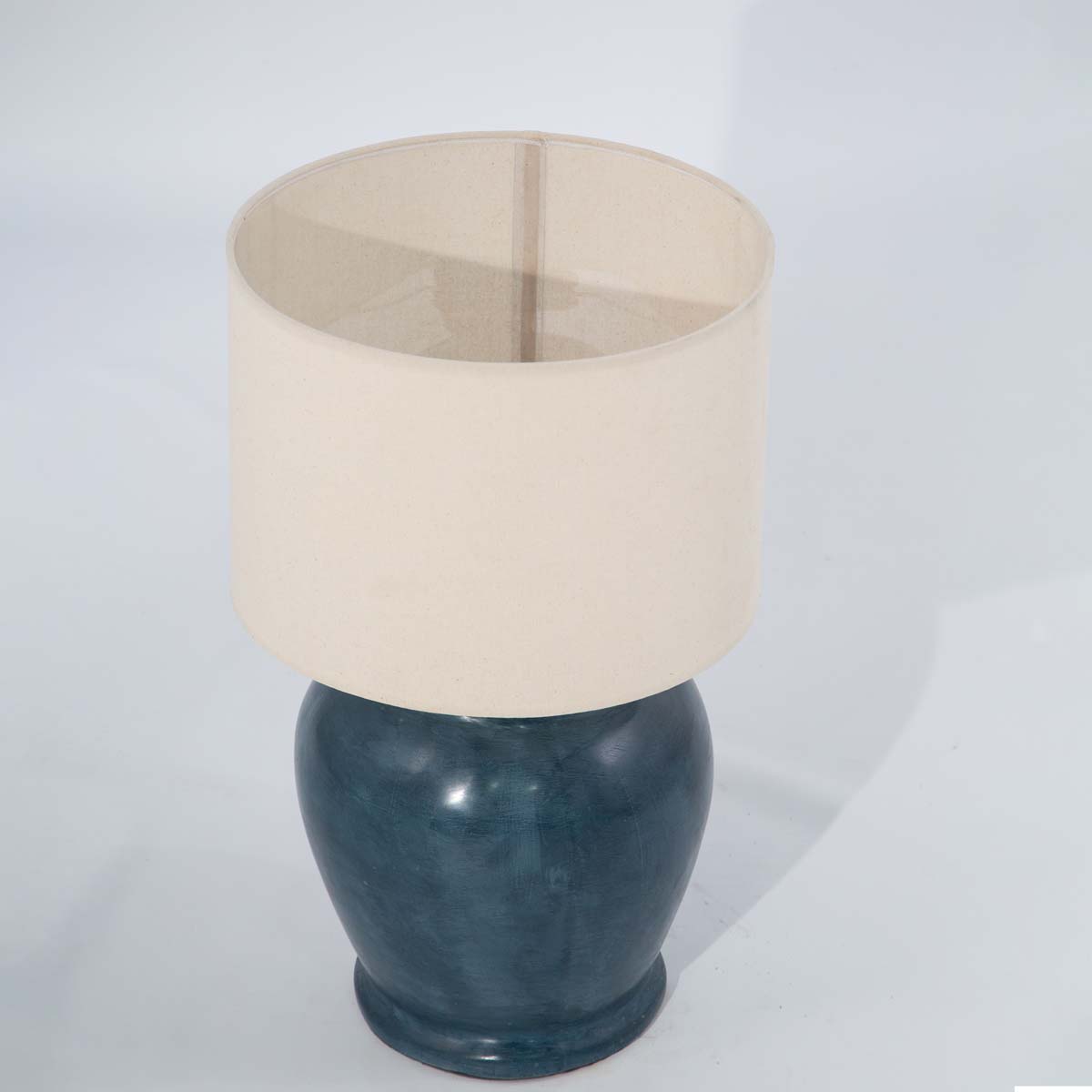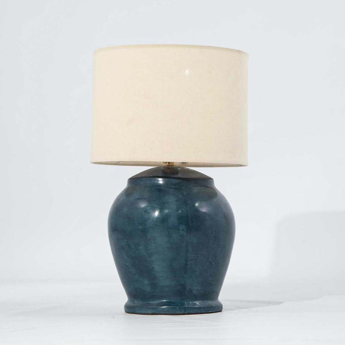 Combinando elegância clássica e um toque contemporâneo, esse abajur de mesa traz base robusta em cerâmica esmaltada com acabamento em azul profundo e textura suave. A cúpula em tecido cru equilibra o design com sua leveza, criando uma iluminação difusa e acolhedora.