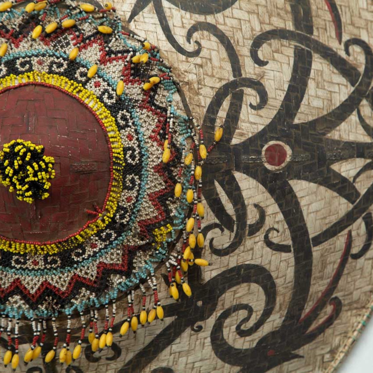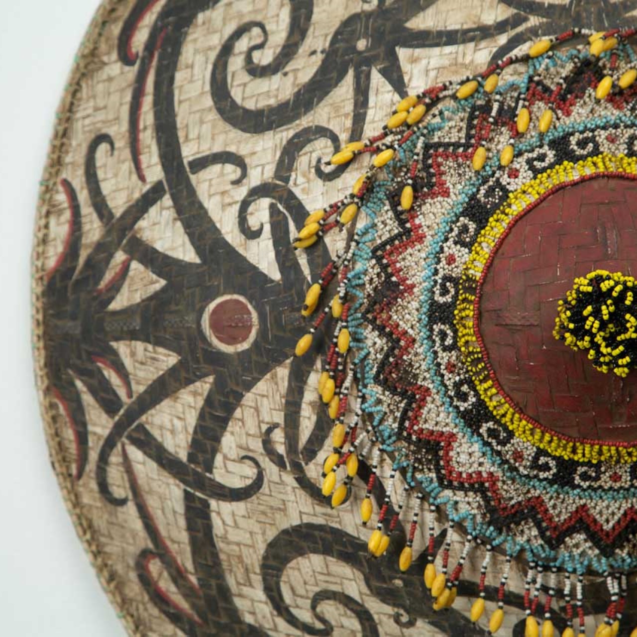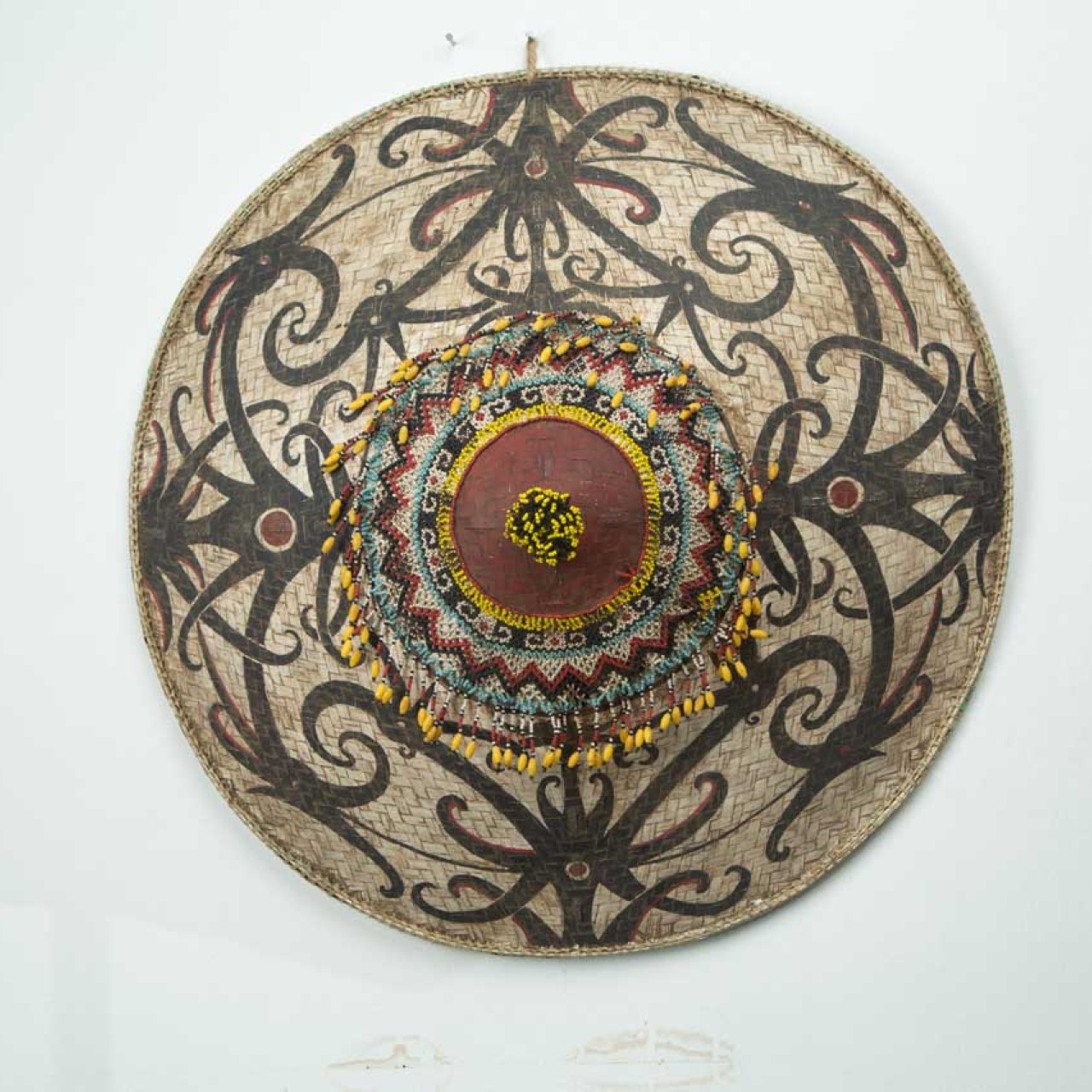Este chapéu decorativo é uma peça artesanal original de Bali, confeccionado em fibra natural com detalhes pintados à mão e riquíssimas aplicações de miçangas e sementes ao centro. Uma peça repleta de identidade cultural, que pode ser usada tanto como item de moda quanto como elemento decorativo de parede, levando autenticidade e cor a qualquer espaço.