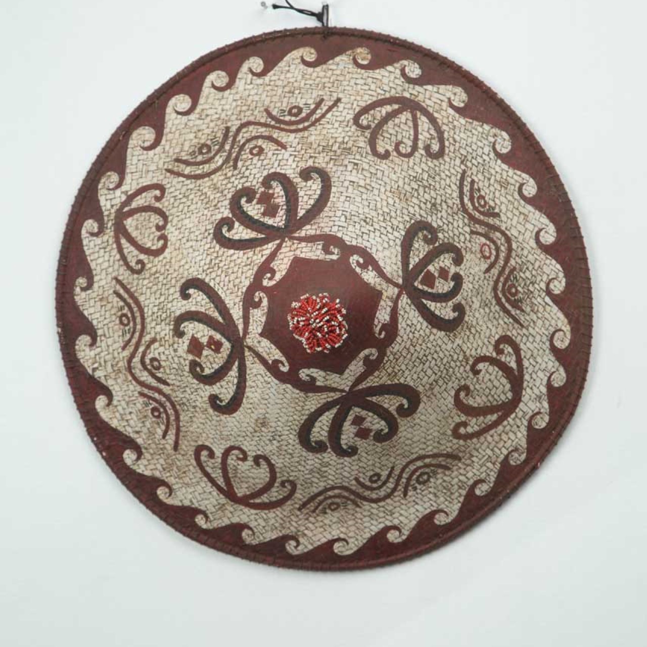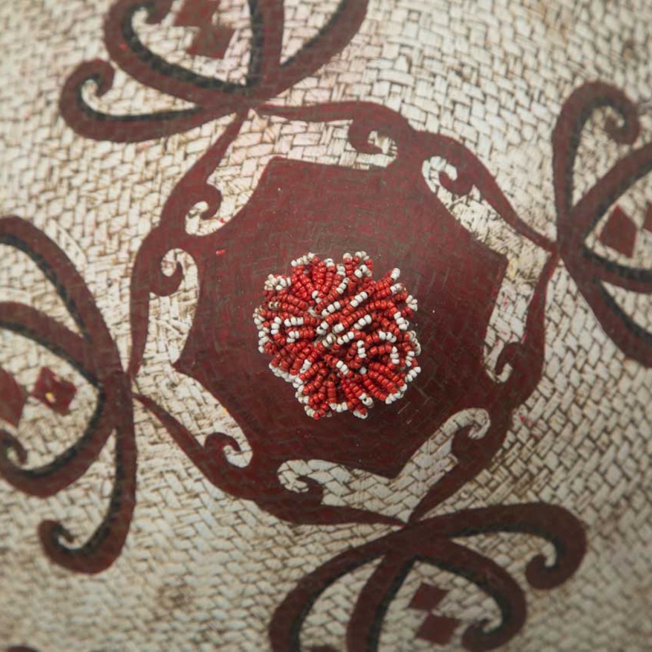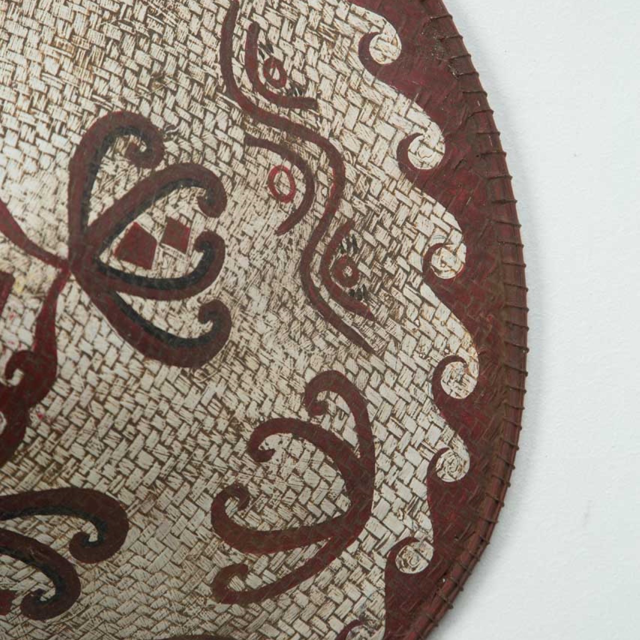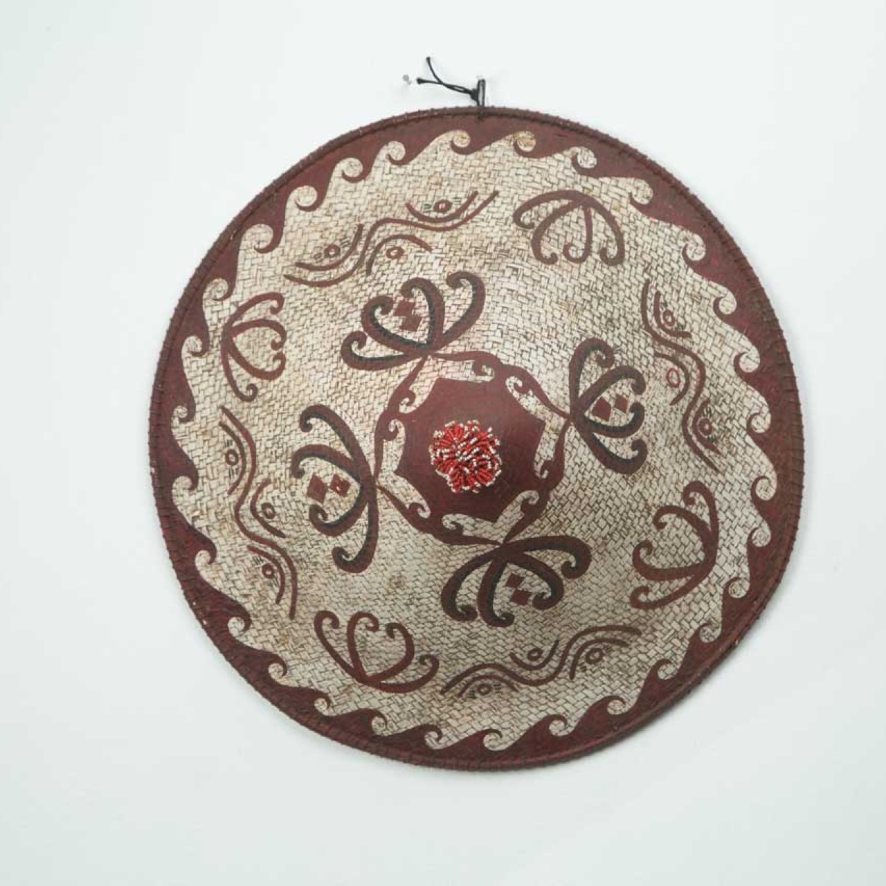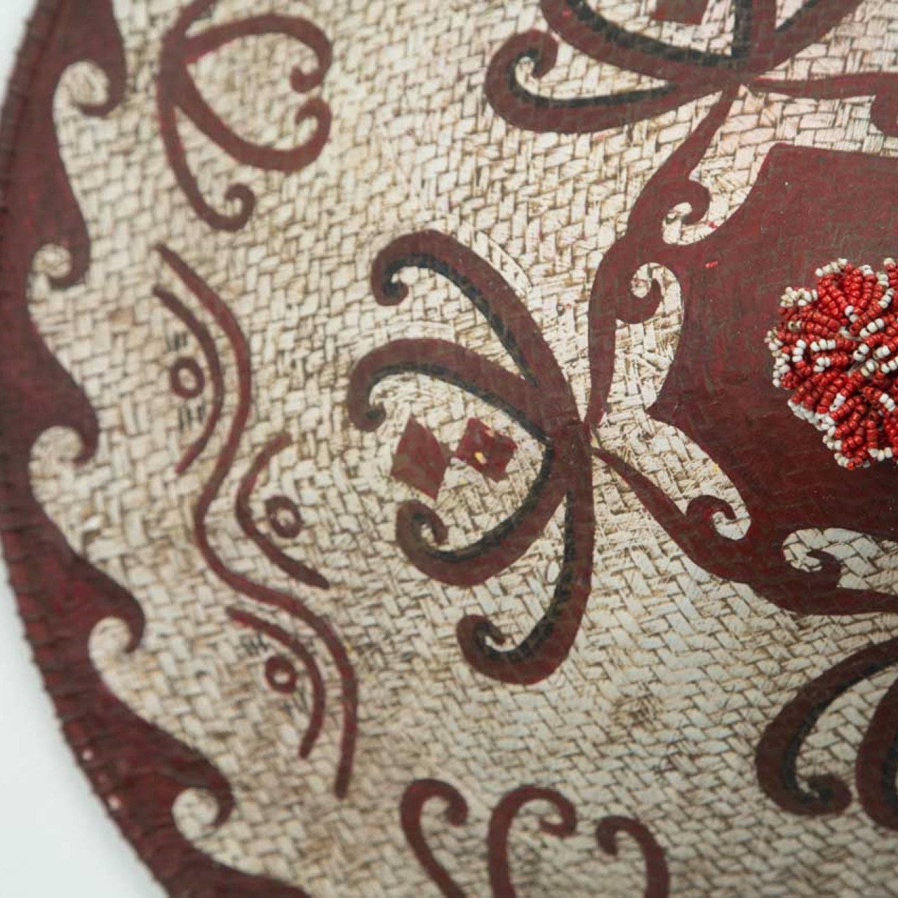 Este chapéu decorativo artesanal é uma verdadeira obra de arte vinda de Bali. Confeccionado em fibra natural, com desenhos tribais pintados à mão em tons terrosos e detalhes em miçangas no centro, ele carrega consigo a essência da cultura indonésia. Perfeito para quem busca uma peça exclusiva, com história e identidade.