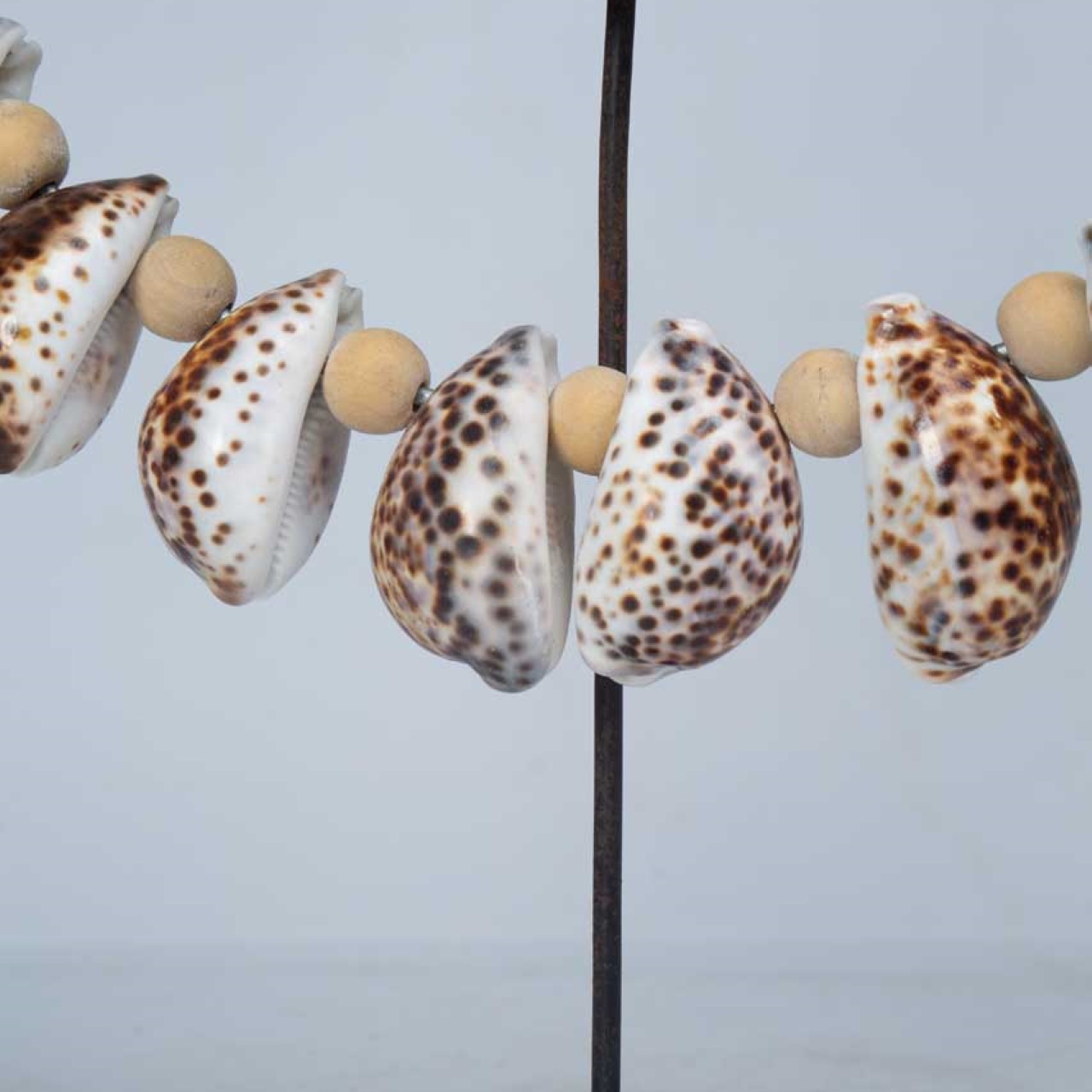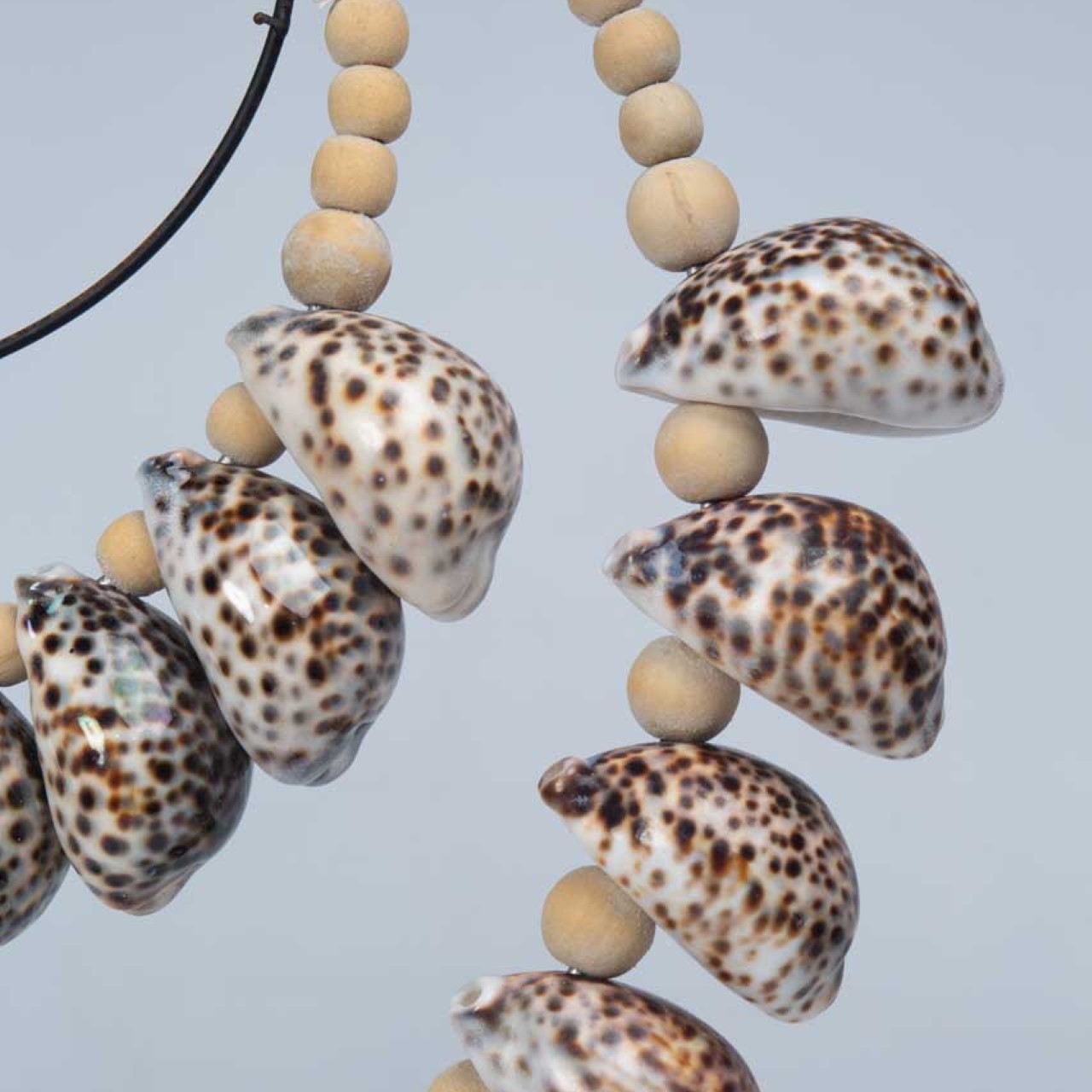 Feito à mão em Bali, esse colar decorativo carrega a força simbólica das conchas do oceano com um toque mais suave e natural. Com estrutura envolta em corda crua e base de ferro, é ideal para dar textura e alma a ambientes com estética praiana, boho ou rústica contemporânea.