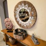 Cores predominantes: Tons terrosos, preto, marrom e bege