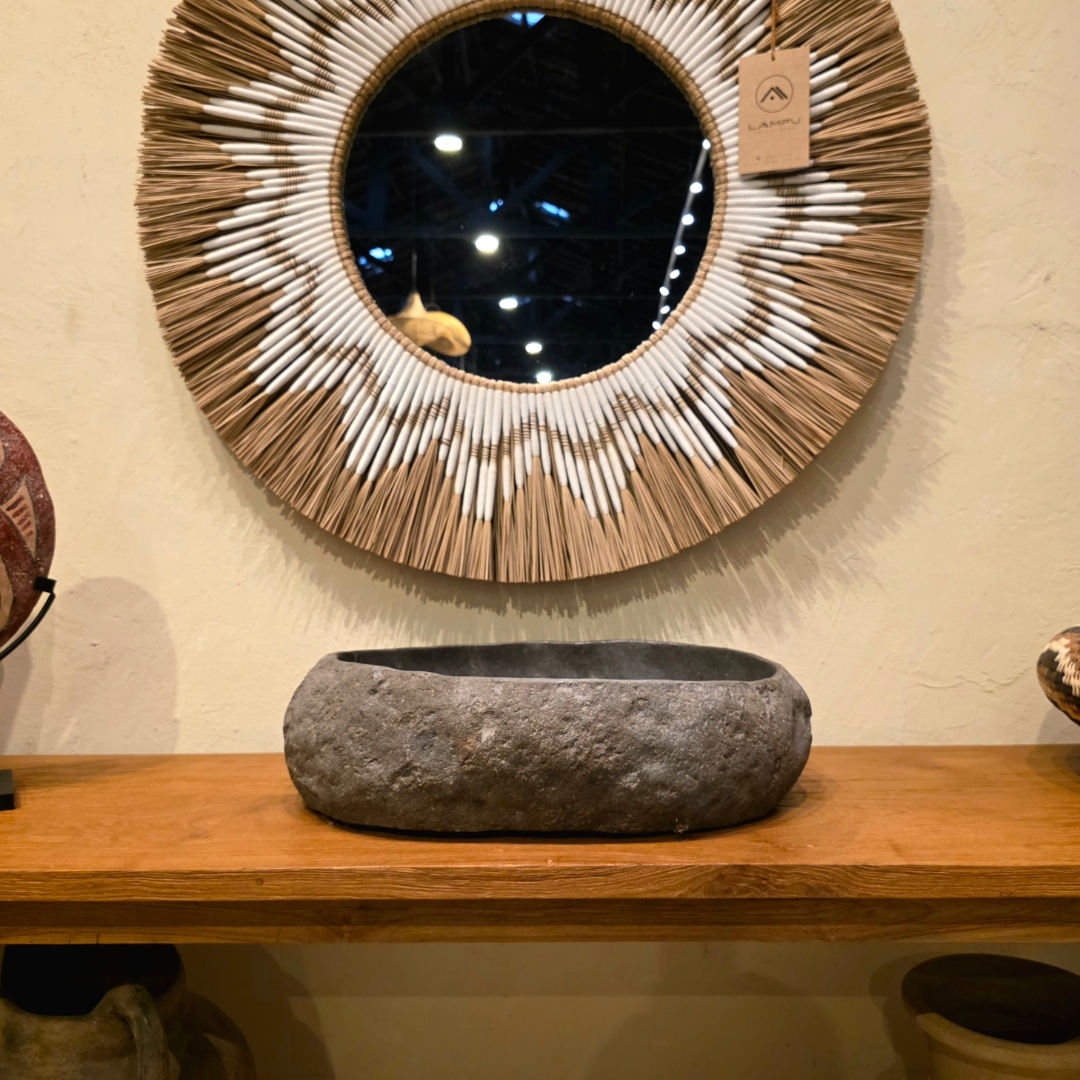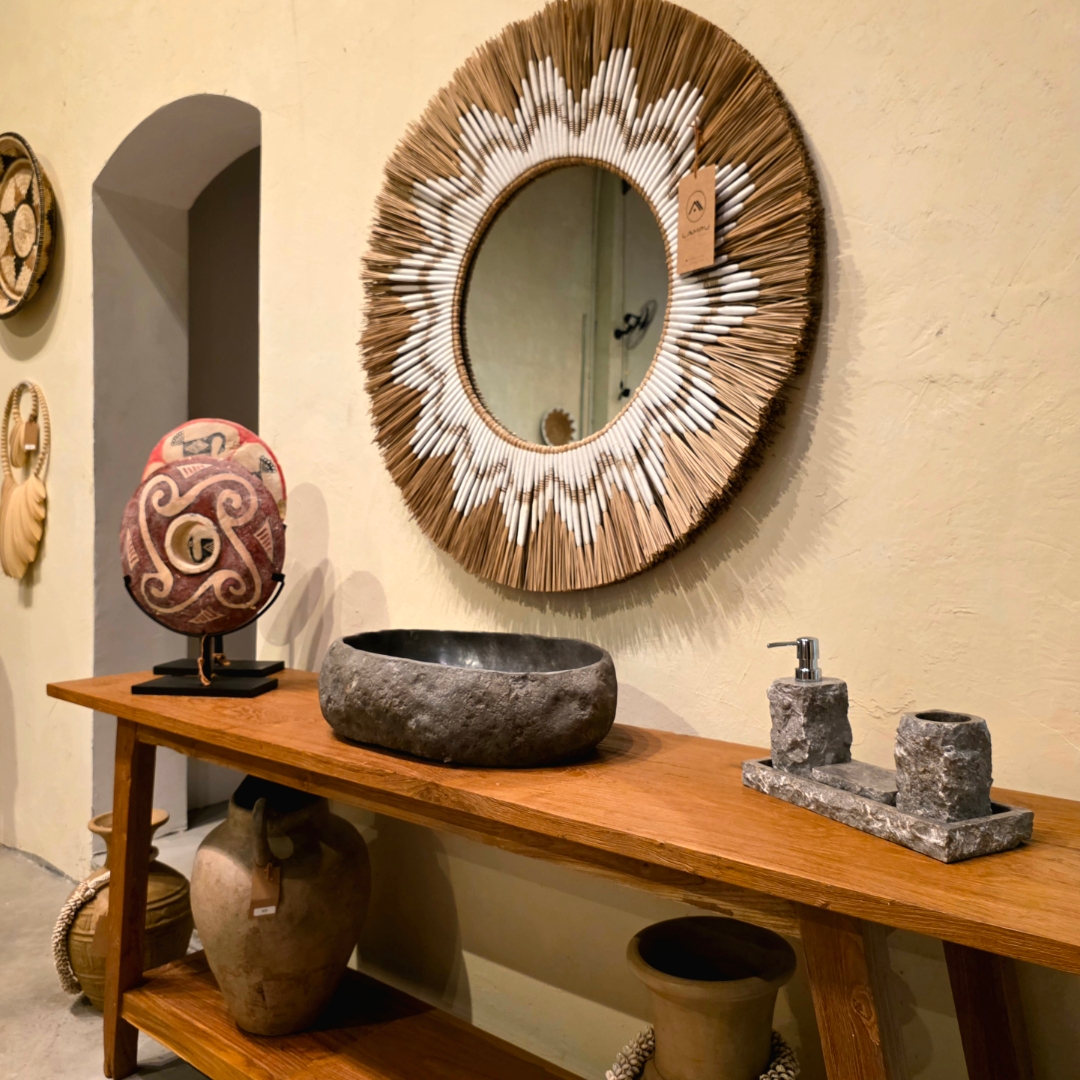 Ideal para lavabos e banheiros que buscam autenticidade, rusticidade e sofisticação. Combina perfeitamente com bancadas de madeira, cimento queimado ou mármore bruto.