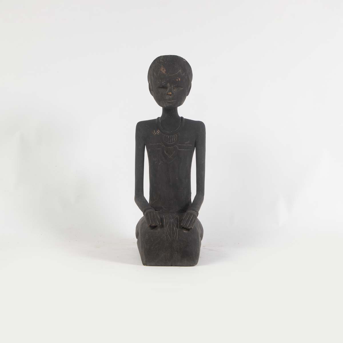 A Escultura Sentada é uma peça que exala ancestralidade e espiritualidade. Com acabamento que remete à pedra vulcânica, é inspirada nas tradicionais esculturas cerimoniais da ilha de Bali. Seu semblante sereno e os traços alongados transmitem calma e presença, sendo perfeita para espaços de contemplação ou decoração com elementos naturais.