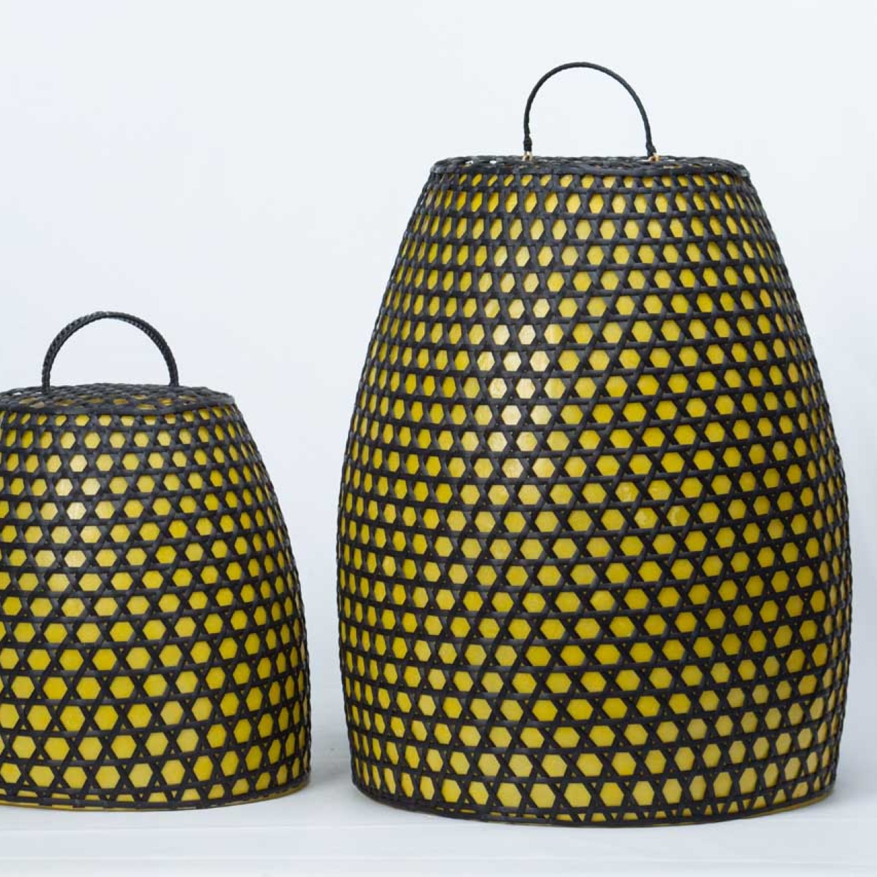 A Luminária Aruna é uma peça de destaque que combina arte artesanal e design contemporâneo. Importada diretamente de Bali, sua estrutura em rattan preto tramado à mão contrasta harmoniosamente com o forro amarelo translúcido, criando um efeito de iluminação aconchegante e sofisticado. Indicada a ser utilizada em Áreas externas, e ambientes abertos pelo seu destaque de cor e forma.