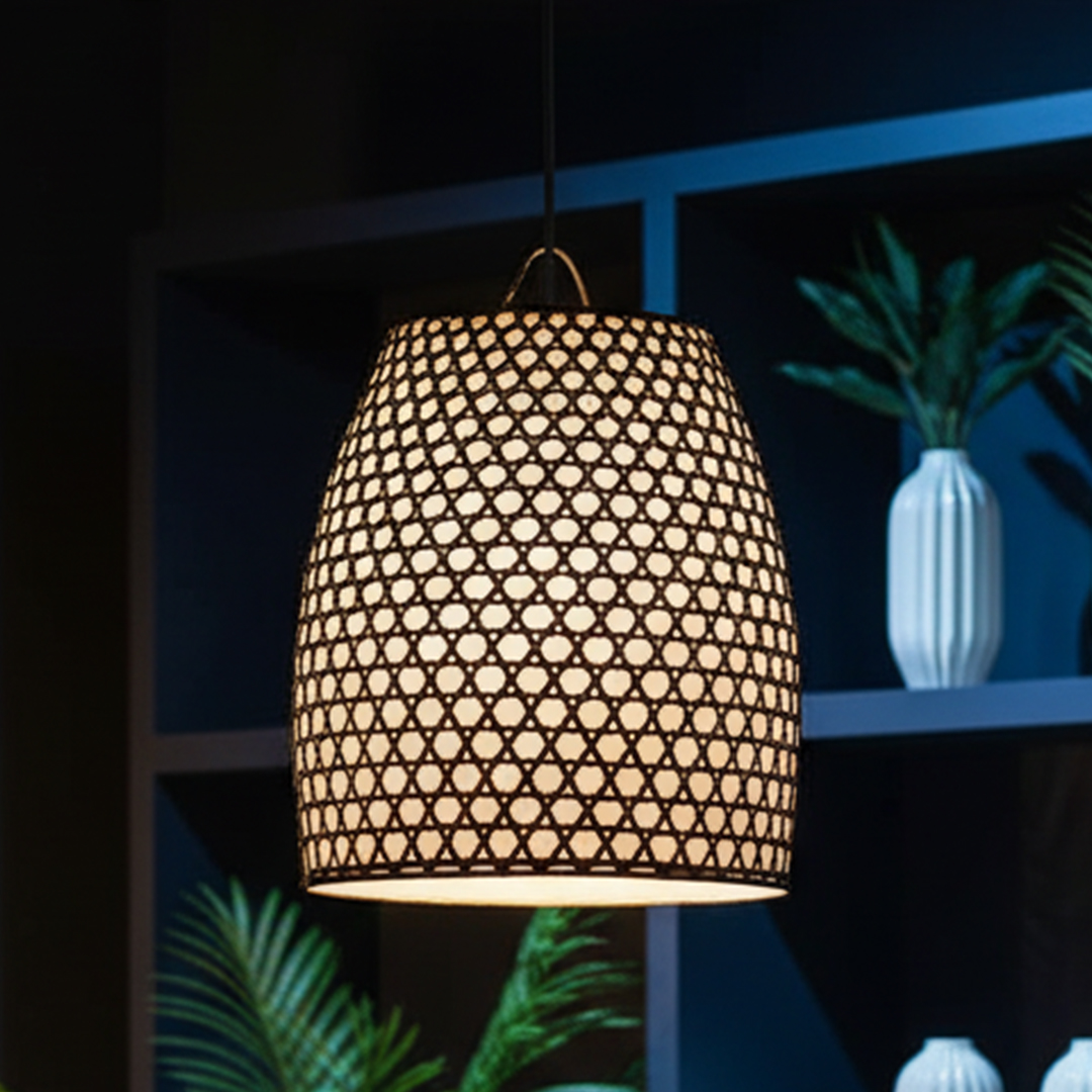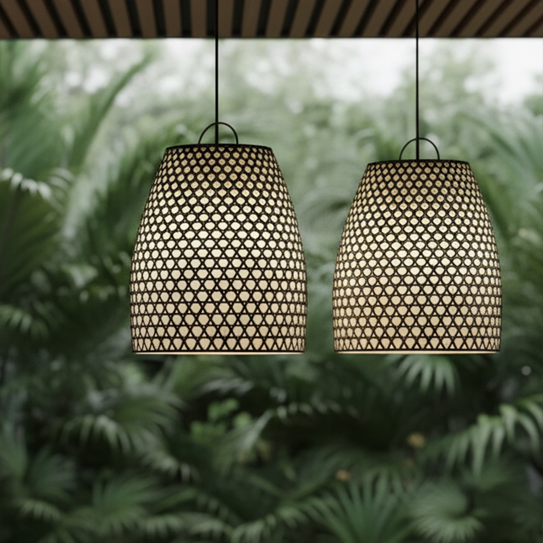 Aposte na “Colméia de Bali” para compor uma iluminação cênica em ambientes com tons neutros, realçando a textura e cor da peça com um toque tropical sofisticado.