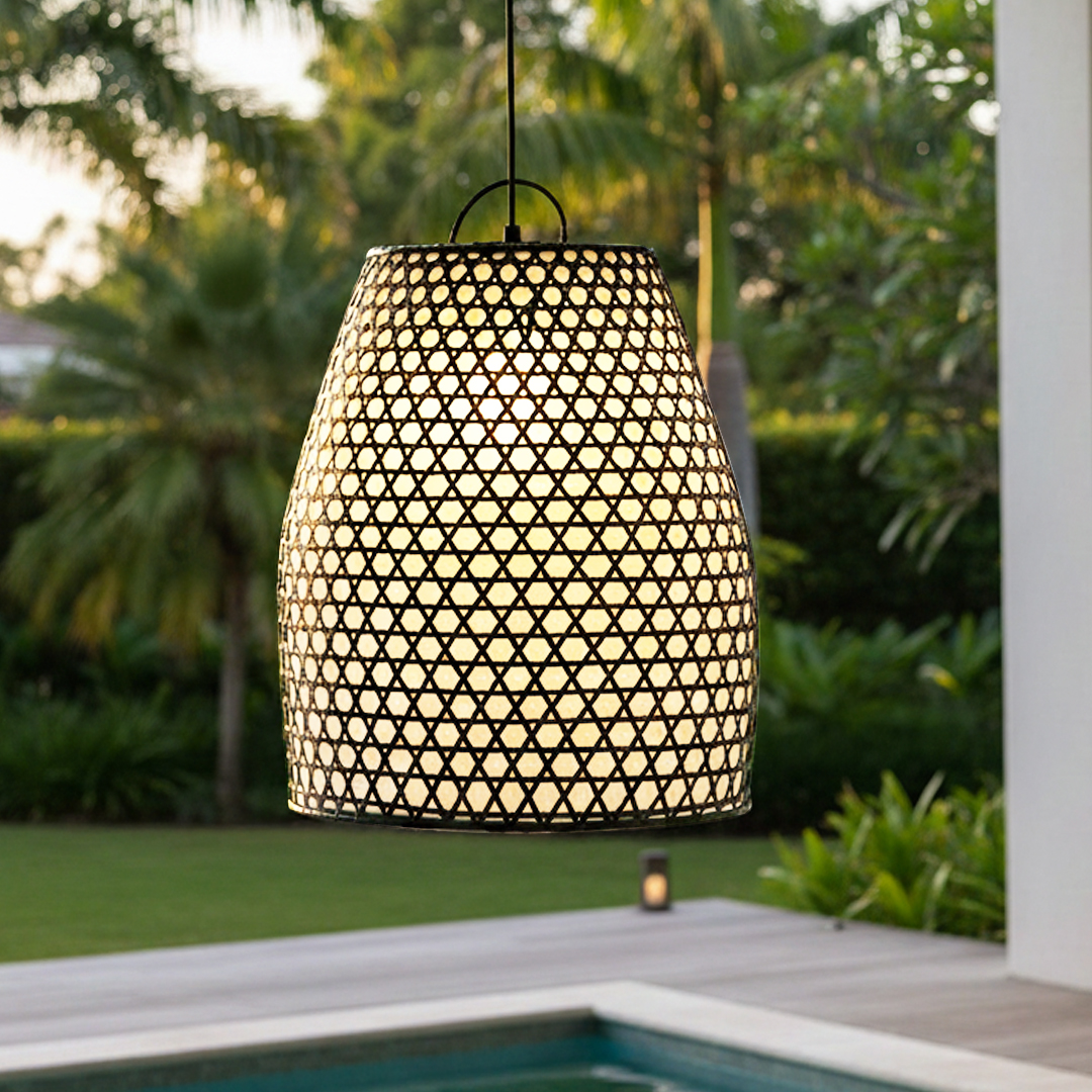 A Luminária Aruna é uma peça de destaque que combina arte artesanal e design contemporâneo. Importada diretamente de Bali, sua estrutura em rattan preto tramado à mão contrasta harmoniosamente com o forro Branco translúcido, criando um efeito de iluminação aconchegante e sofisticado. Indicada a ser utilizada em Áreas externas, e ambientes abertos pelo seu destaque de cor e forma.