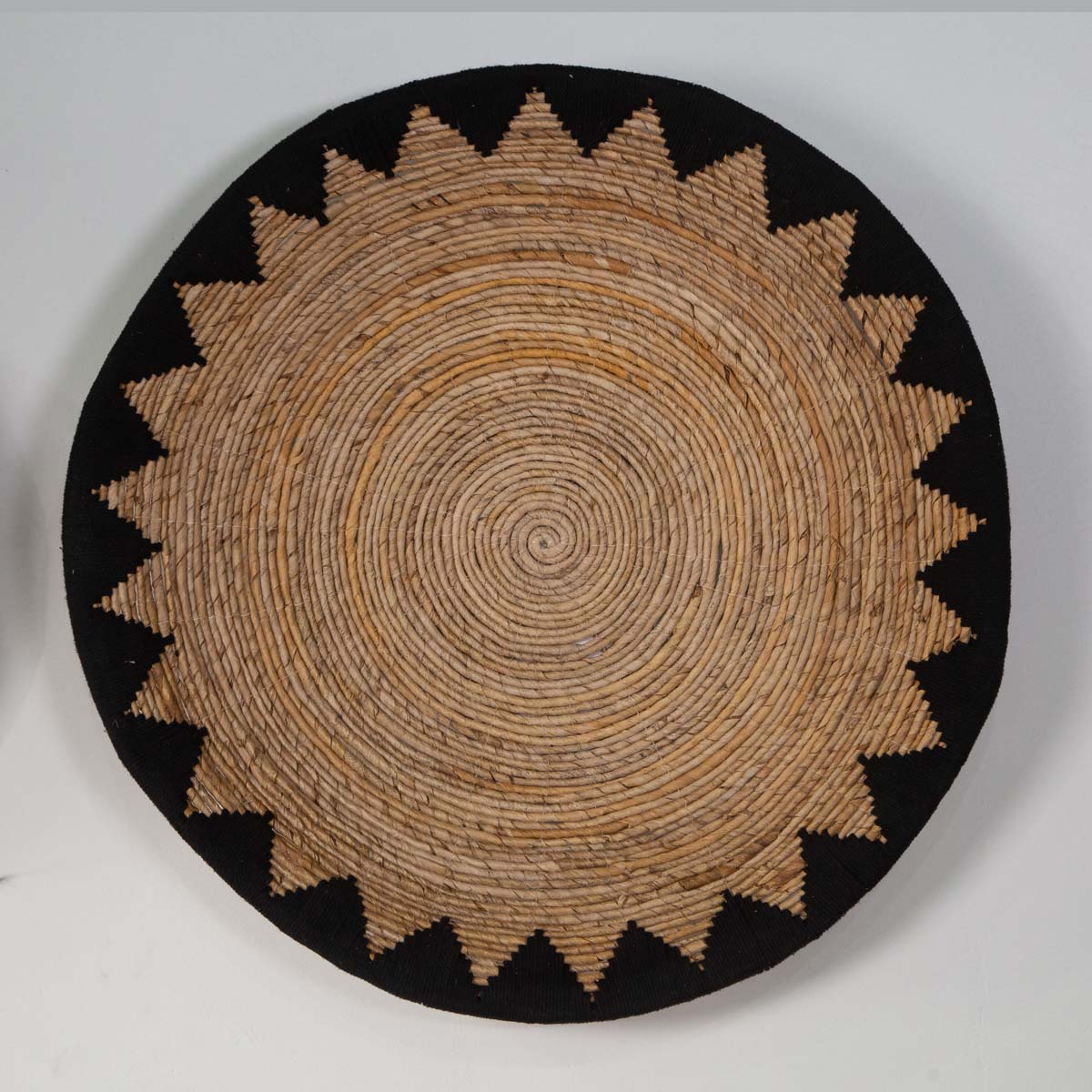 Com traços marcantes e contrastes naturais, a Mandala Eclipse é uma peça de presença. Feita à mão com fibras naturais e borda em algodão preto, ela evoca o mistério e a beleza dos ciclos lunares. Uma arte que transforma a parede em poesia visual.