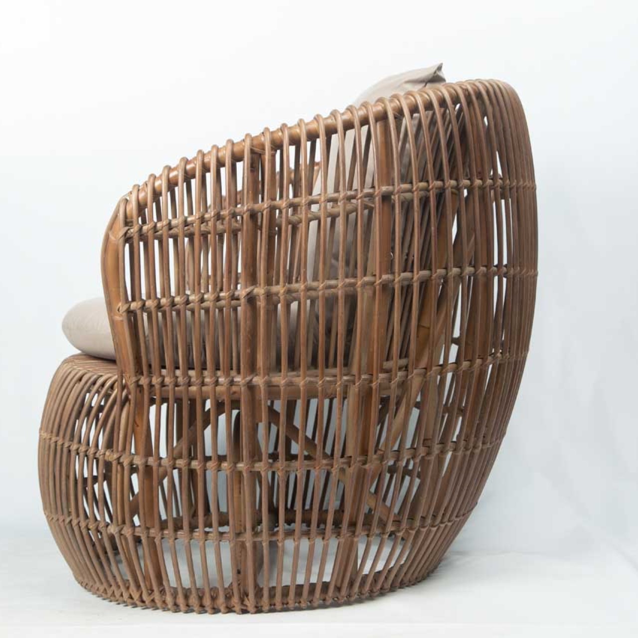 Com um visual envolvente e contemporâneo, a Poltrona Nusa é uma verdadeira obra-prima do design artesanal. Feita à mão em Bali por artesãos especializados, sua estrutura arredondada em rattan natural trançado proporciona uma sensação de leveza e fluidez, sem abrir mão da robustez.
