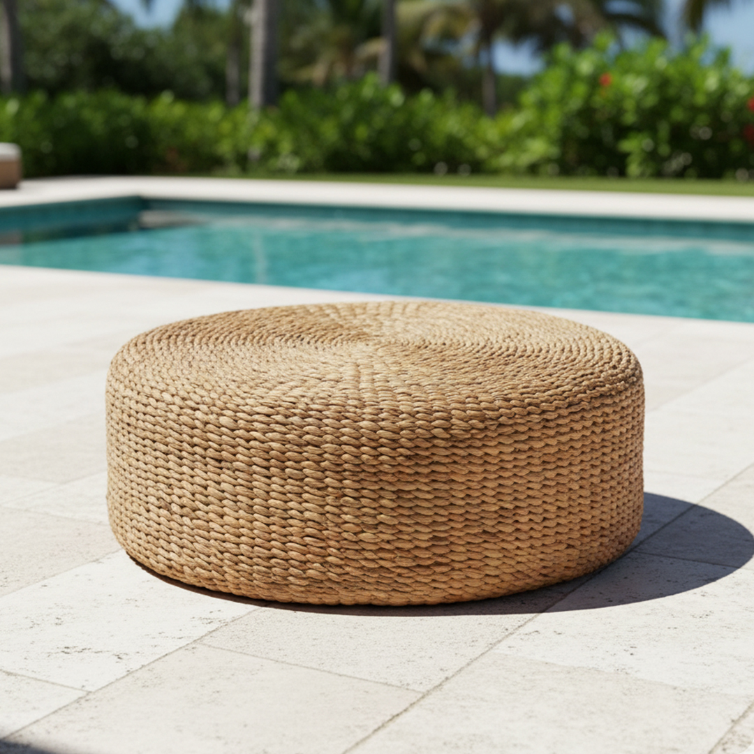 Este pufe redondo feito em fibra natural trançada é uma peça versátil e cheia de charme. Com seu visual artesanal e toque rústico, traz aconchego e textura ao ambiente. Pode ser utilizado como apoio para os pés, assento extra ou até mesmo como mesa lateral com uma bandeja decorativa.