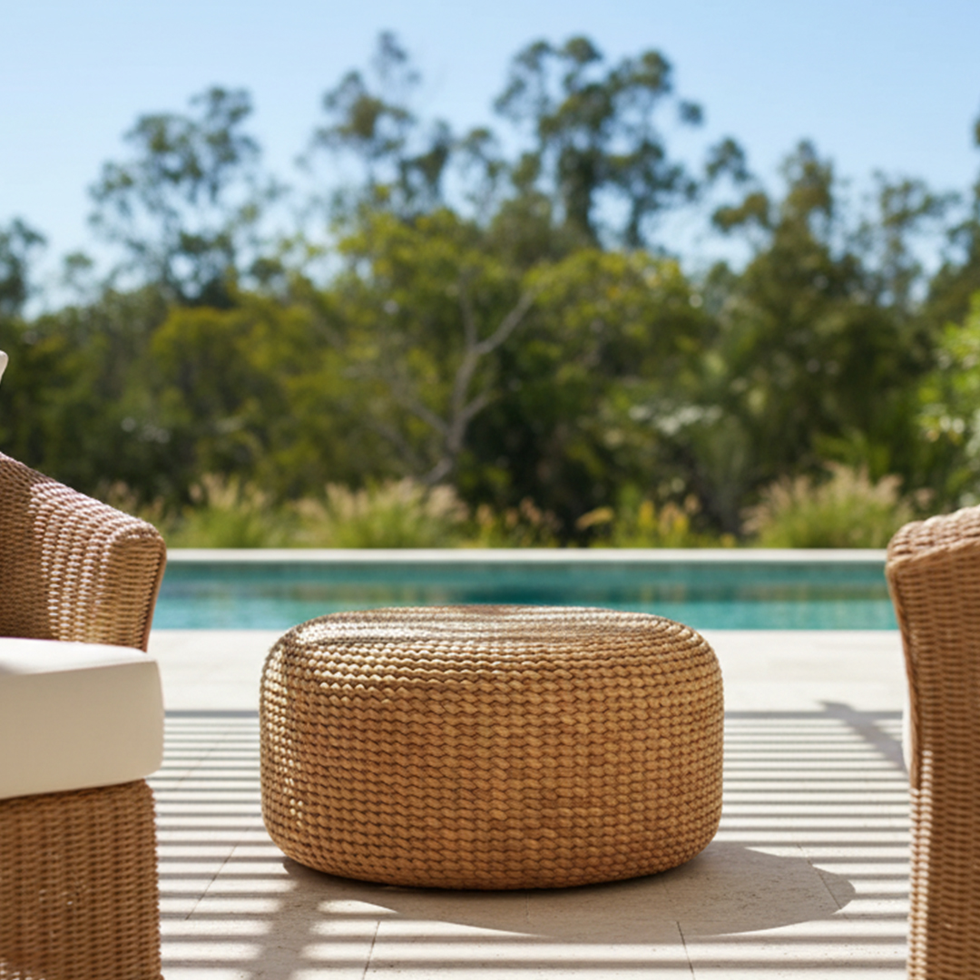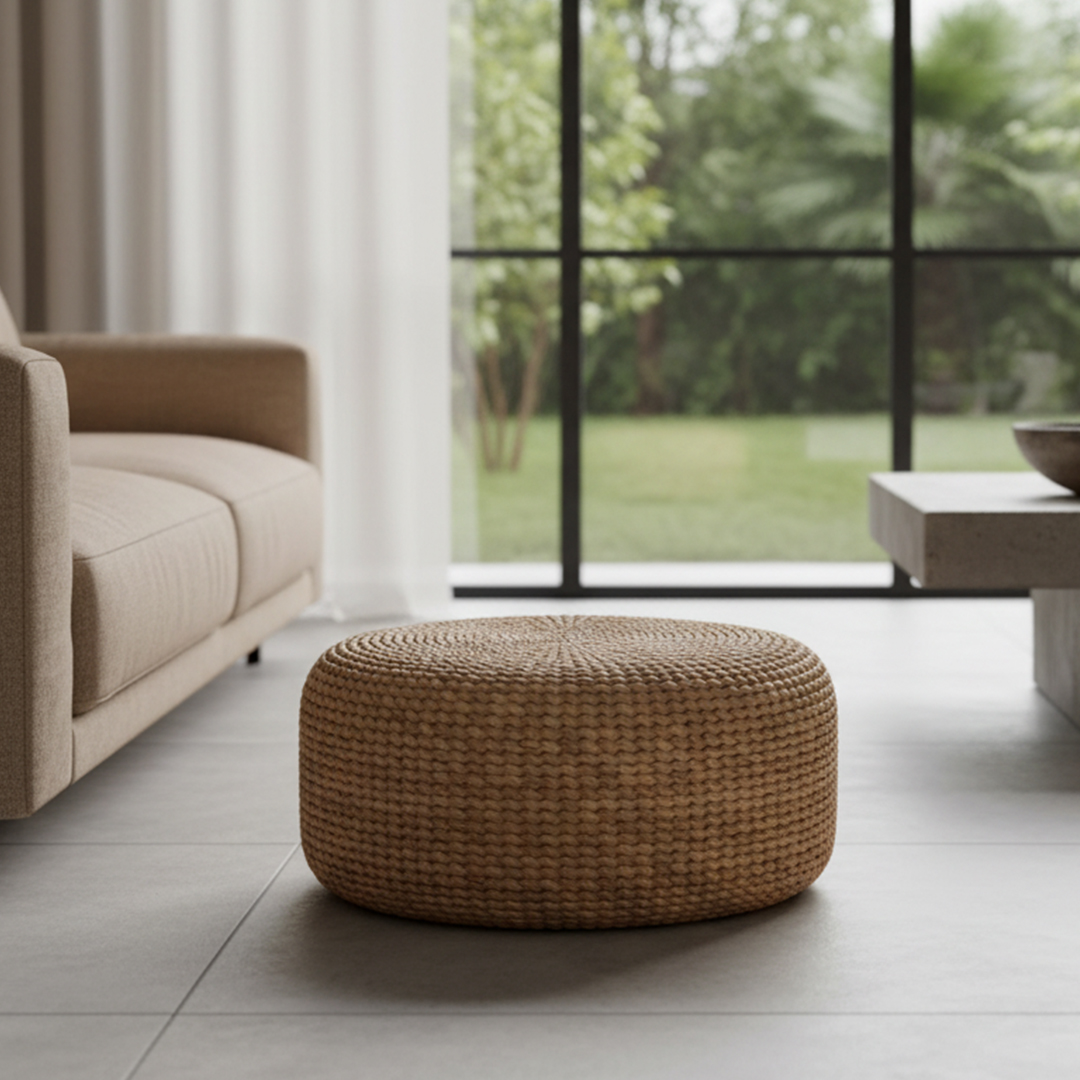 Conforto e estilo se encontram neste pufe artesanal feito em fibra natural trançada à mão. Com formato circular e visual rústico-chique, ele é uma excelente opção como assento extra, apoio para os pés ou até mesmo como mesa de centro informal em salas, varandas ou espaços zen.