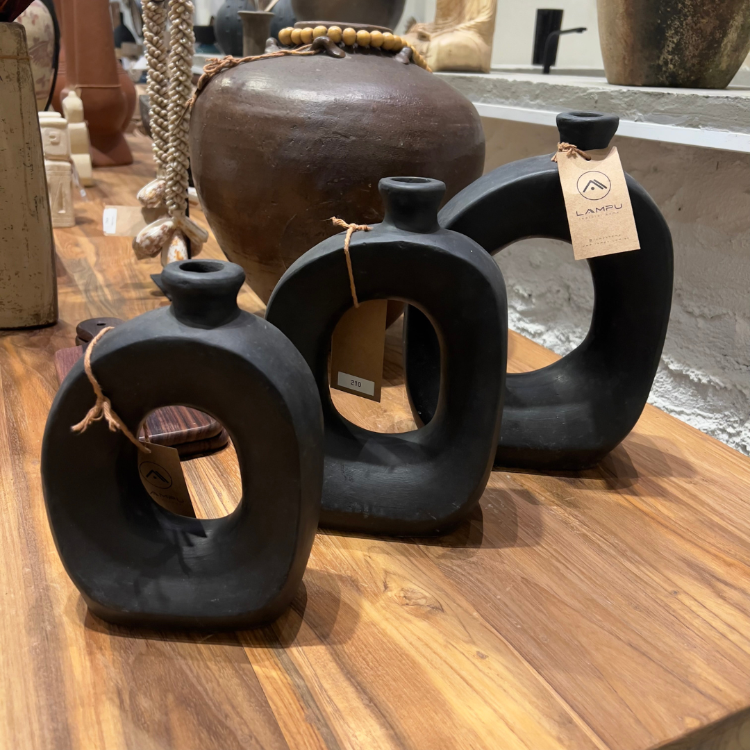 O vaso balinês é uma peça artesanal de cerâmica de alta qualidade, conhecida por sua beleza exótica e acabamento rústico sofisticado. Produzido em Bali, com técnicas tradicionais passadas por gerações, ele combina autenticidade e um design marcante, tornando-se um verdadeiro protagonista na decoração.